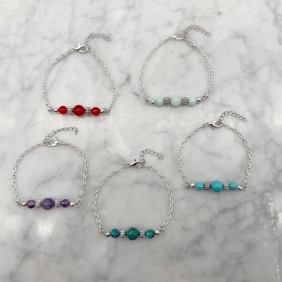 Beautiful Assorted Natural Gemstone Link Bracelets - 5 Pcs