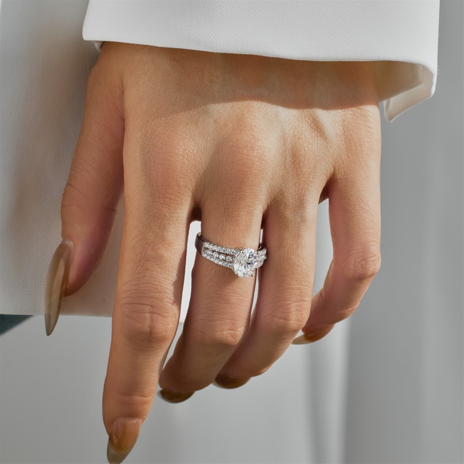 2.0ct Oval Cut GRA Certified Moissanite 925 Sterling Silver Ring - Size 8