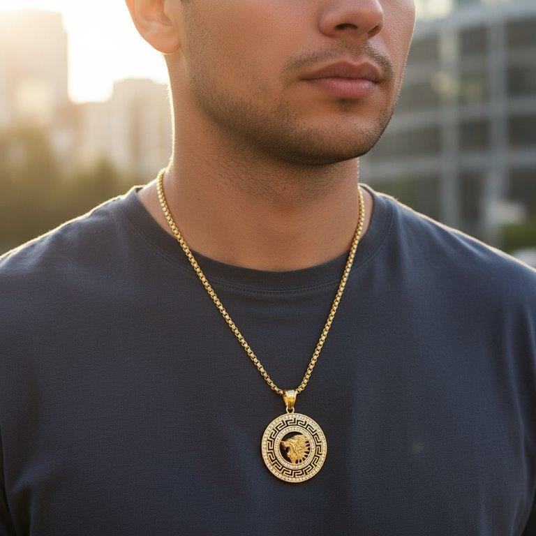 Italy 925 Silver Hip Hop Men`s Necklace (Stamps)-Free Chain