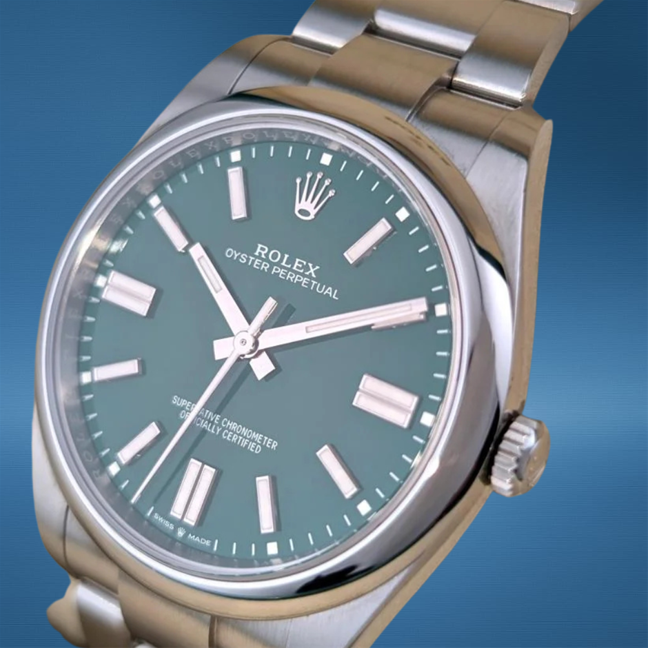 • THE GREEN DIAL VARIANT IS ONE OF THE MOST SOUGHT-AFTER CONFIGURATIONS IN THE MODERN OYSTER PERPETUAL LINEUP.