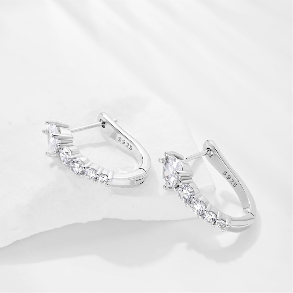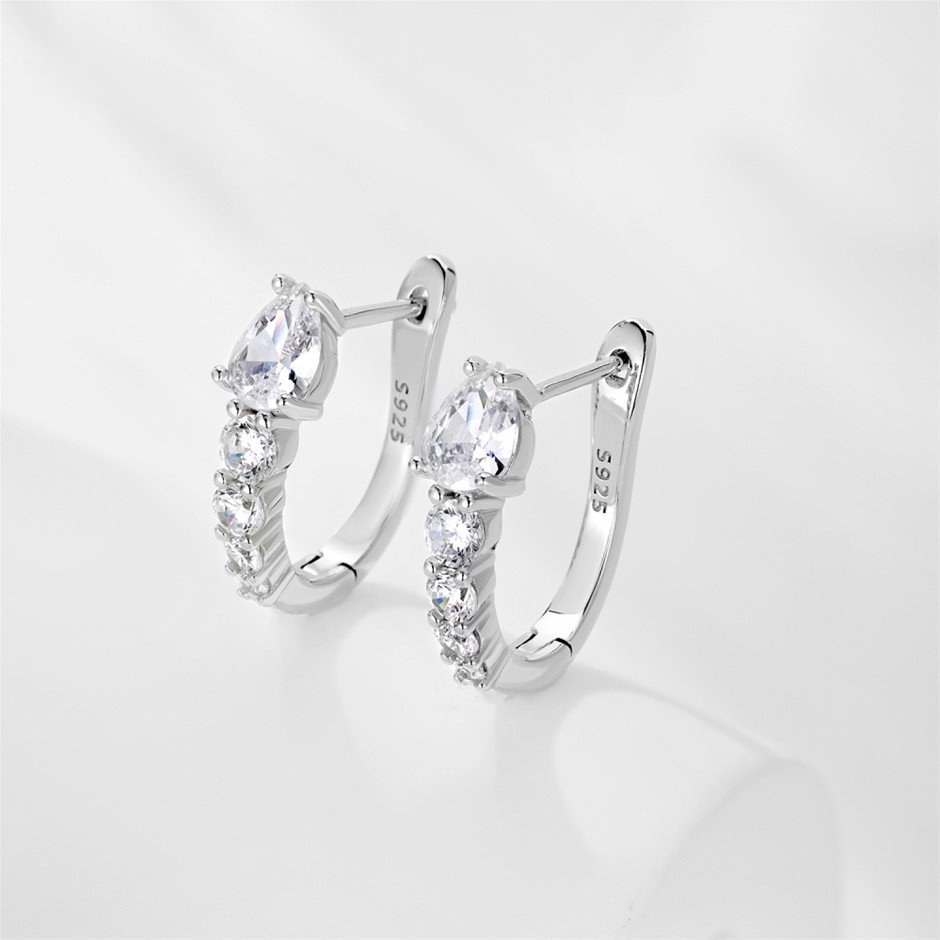 Teardrop Snake 925 Sterling Silver Simulated Diamonds Hoop Earrings