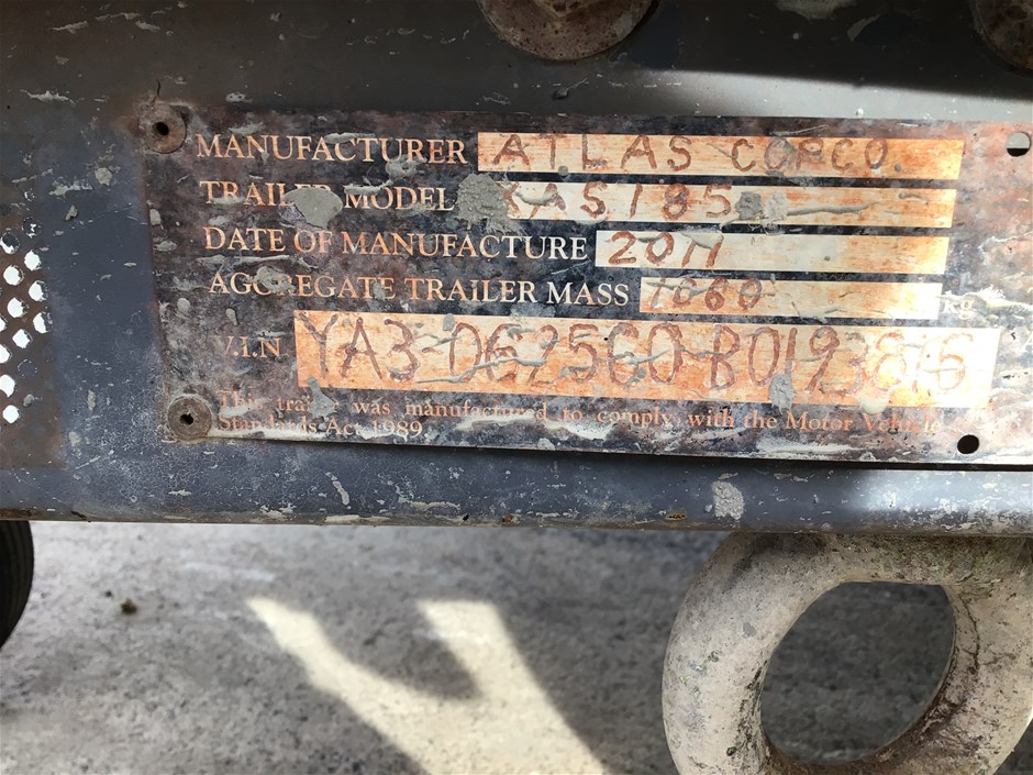 Atlas Copco XAS185 DD7 Trailer Mounted Compressor