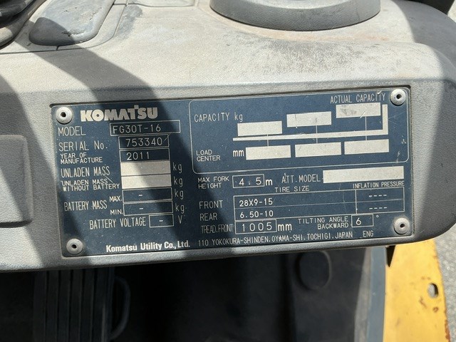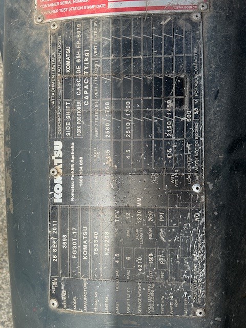 2011 Komatsu FG30T-17 Forklift - 2.5t - 3.0m - LPG