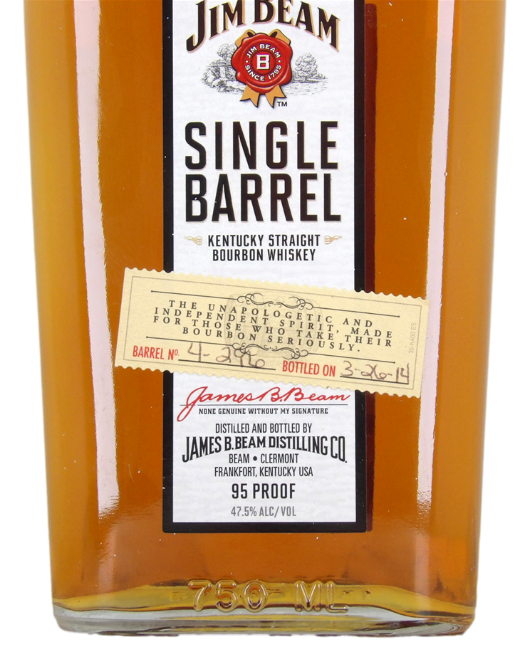 Jim Beam Single Barrel Barrel Bourbon - Number 4-296 March 2014 (1x 750mL), USA.