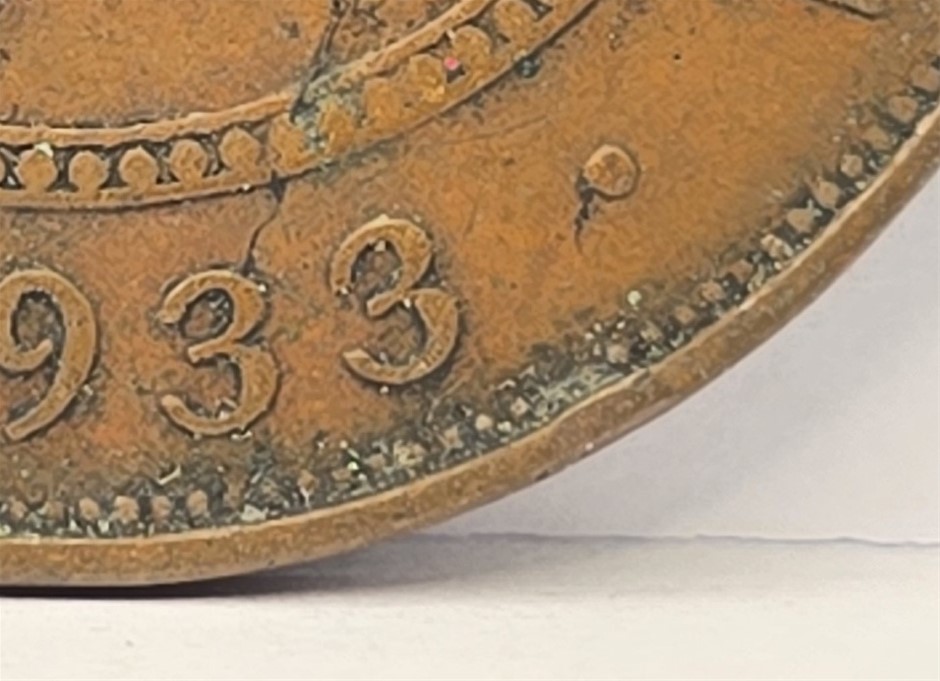 • A Well Defined 1932/3 Overdate Penny with a Gas Inflicted Planchet Flaw