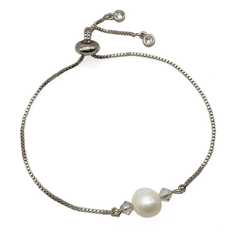 Freshwater Pearl Adorned with Swarovski® Crystal Real Platinum Plated Chain with Adjustable Slider Bracelet