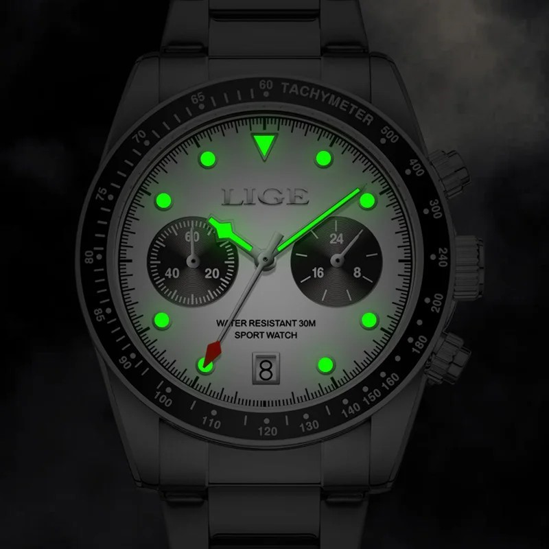 LIGE Luxury SS Chronograph Quartz Men's Watch