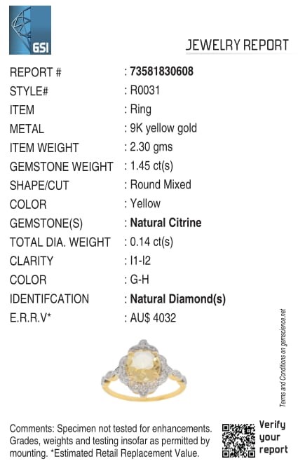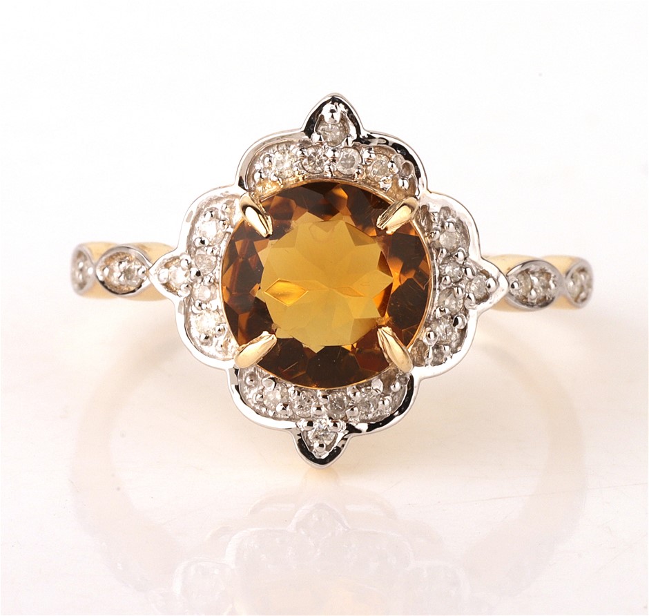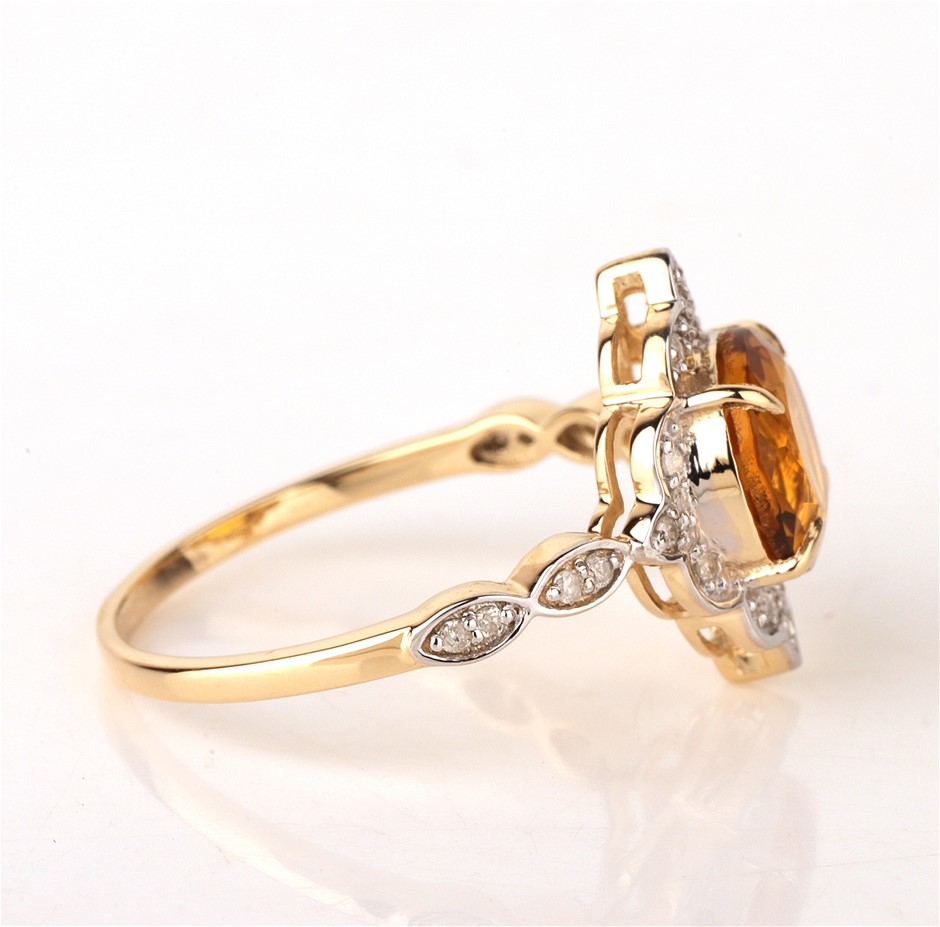Yellow Gold Natural Citrine & Diamond Ring with valuation