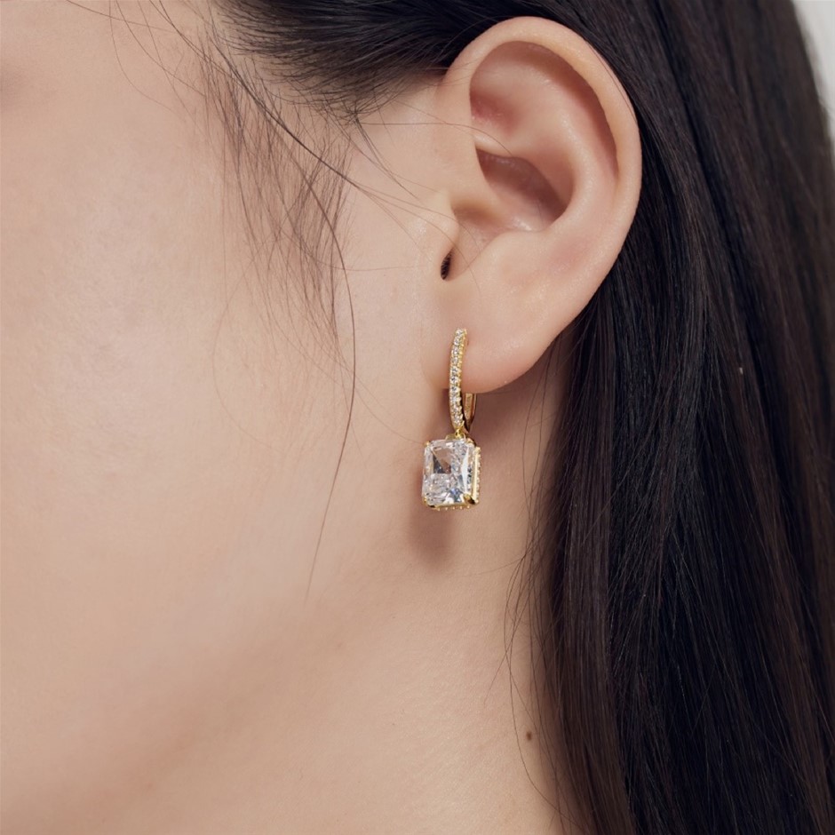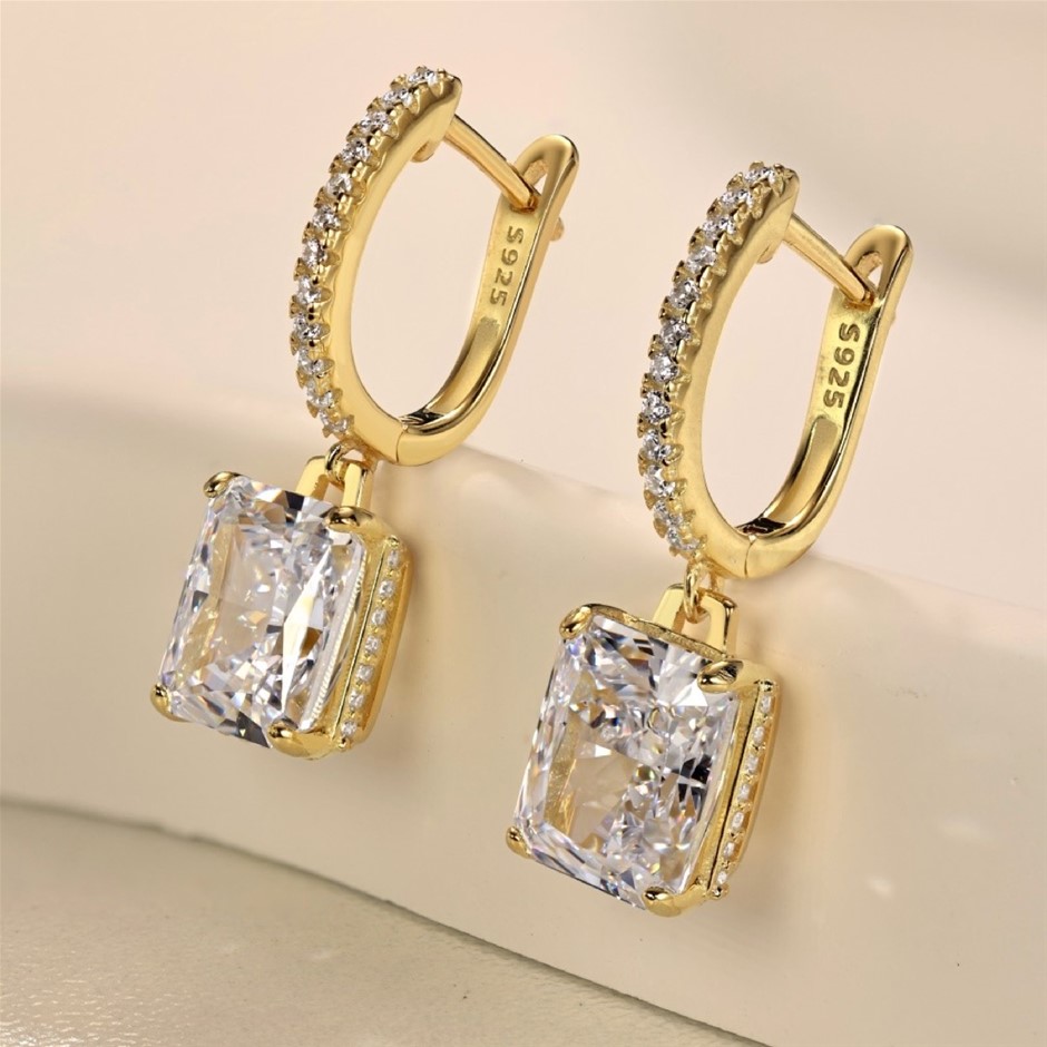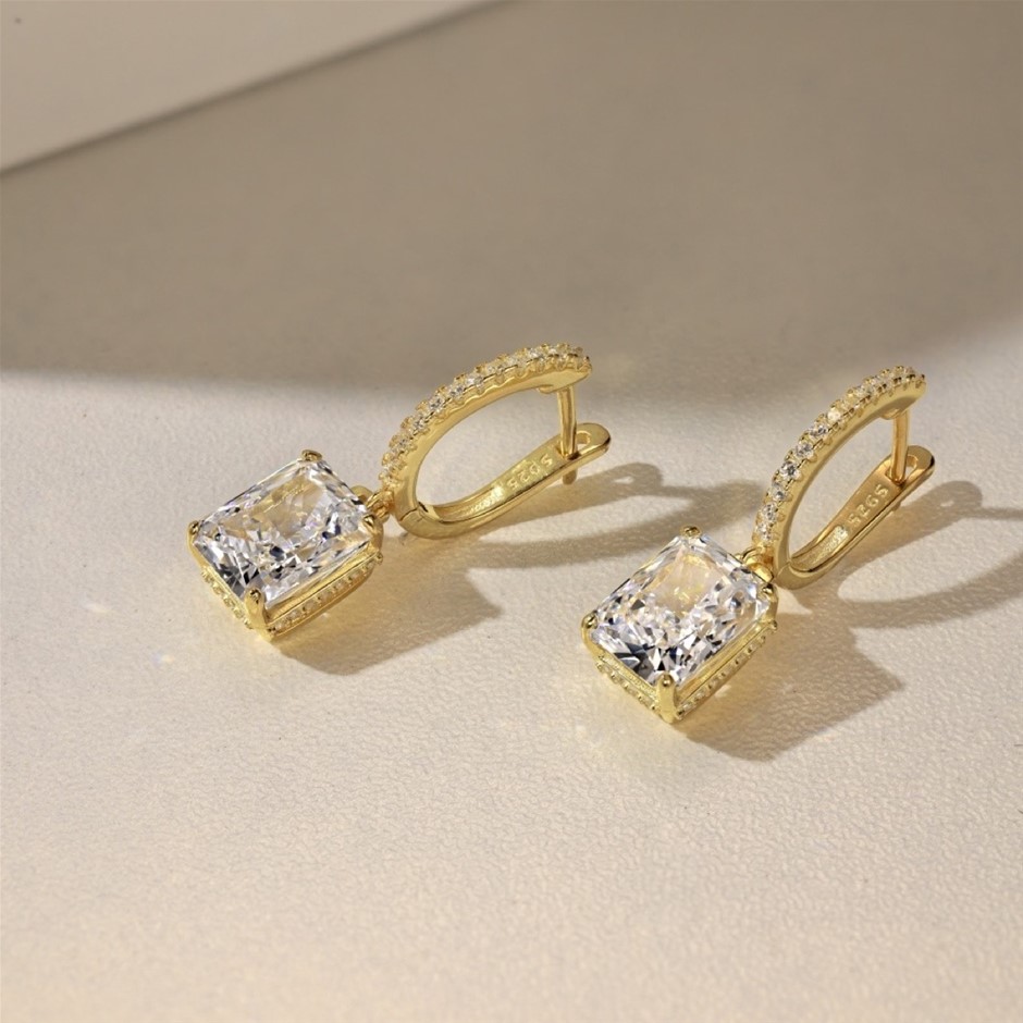 Rectangle 18K Gold Filled 925 Silver Simulated Diamonds Hoop Earrings