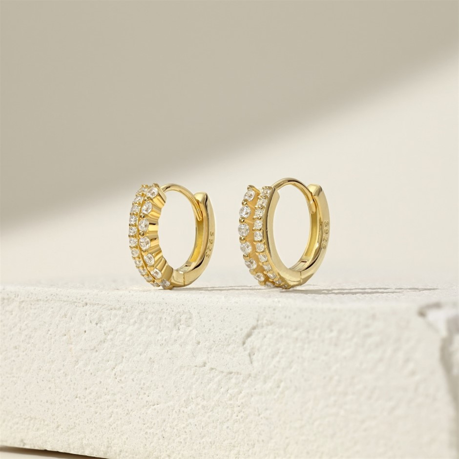 18K Gold Filled 925 Silver Simulated Diamonds Hoop Earrings