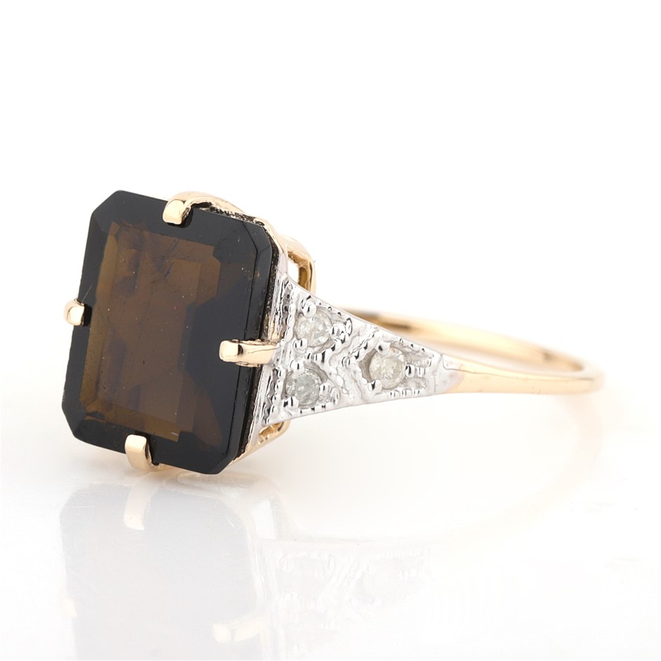 Yellow Gold Natural Tourmaline & Diamond Ring With Valuation