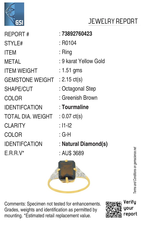 Yellow Gold Natural Tourmaline & Diamond Ring with valuation