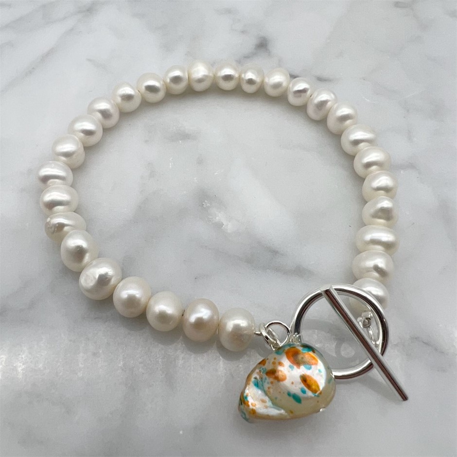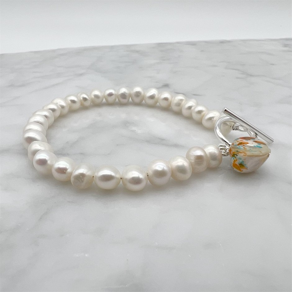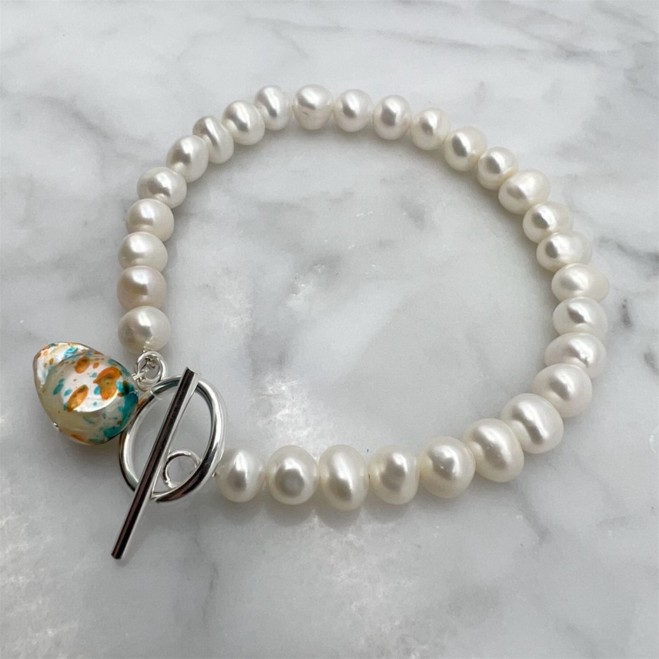 7-8mm NPearl with 'O' Toggle & Dangling Blister Pearl Bracelet