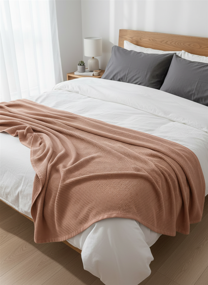 Meet the best of both worlds. The Daily Shop’s Luxe Dual-Texture Towel combines plush terry on one side with stylish waffle weave on the other—offering a perfect blend of comfort, absorbency, and elegance. Crafted from 100% combed cotton in a soft peachy pink shade, this exclusive towel is extra oversized, ultra-absorbent, and made to stand out at the beach, pool, or spa. (331824-10)