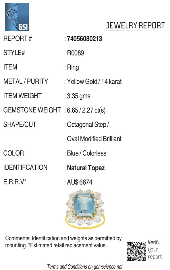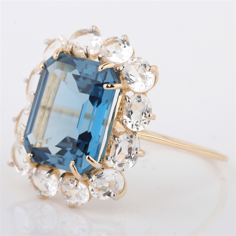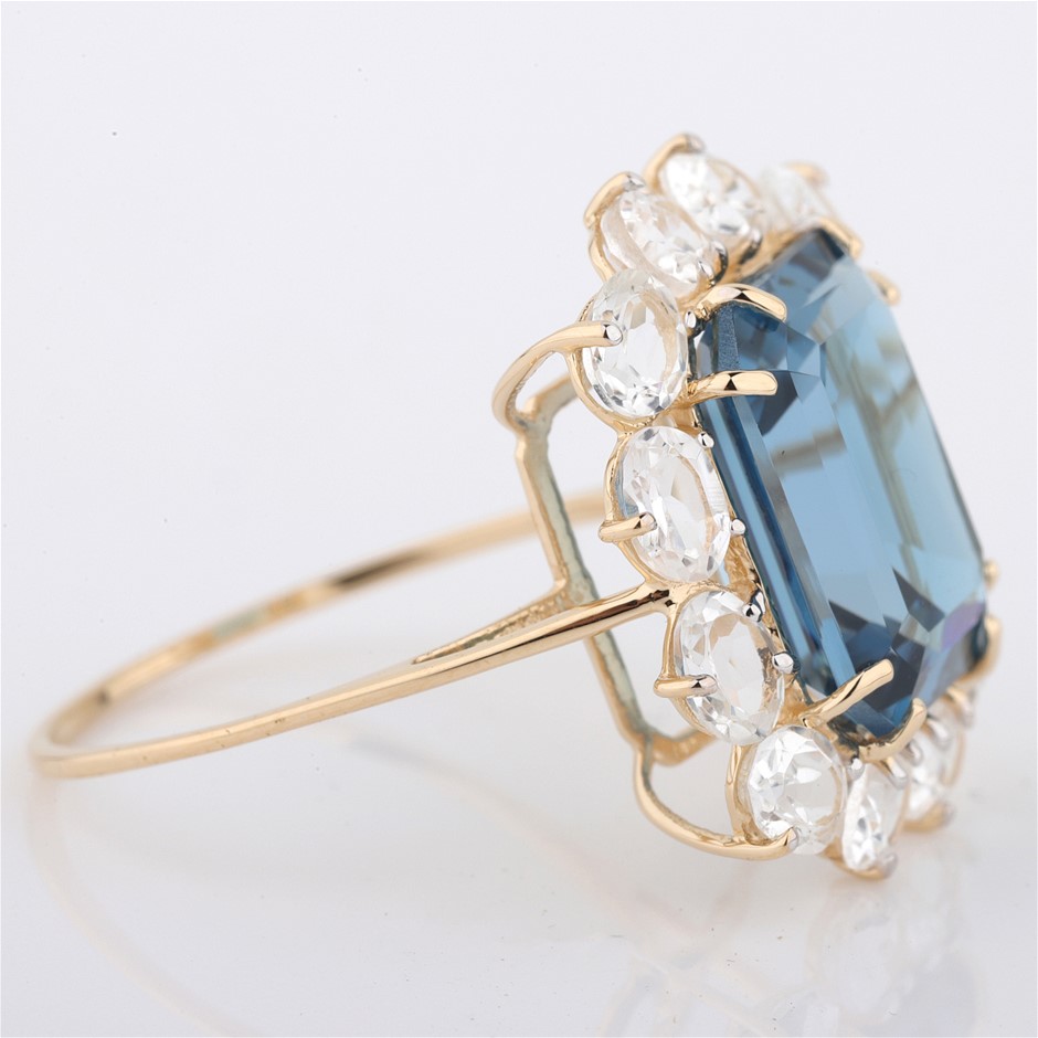 14k Yellow Gold Natural London Blue Topaz / Natural White Topaz Ring with valuation