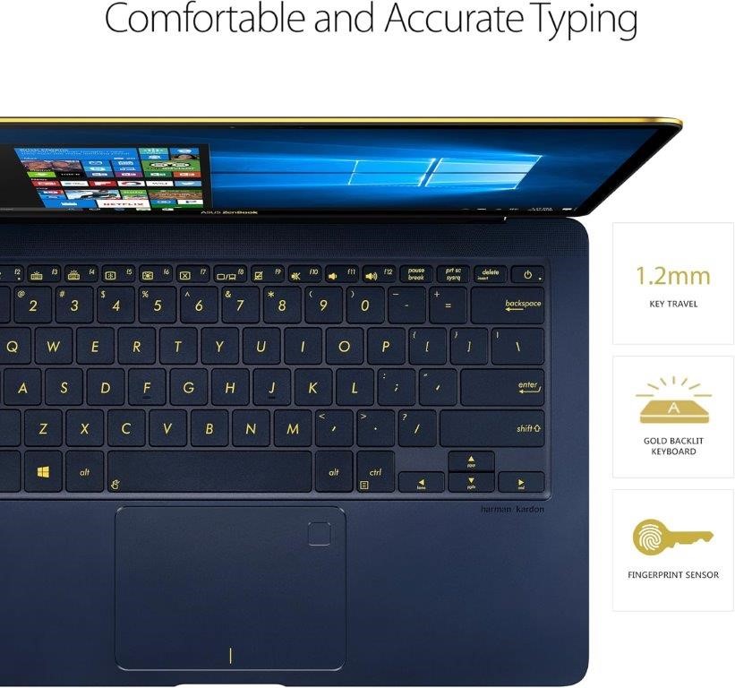 ASUS UX490UA-BE038R ZenBook 3 Deluxe 14`` Laptop, Royal Blue. NB: used, powers on, no further testing, no charger, damaged packaging. (Code: B07J1F49S5-U) (140644-10)