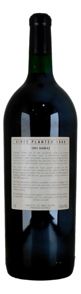 Chateau Tahbilk 1860 Vines Shiraz 1991 (1x 1.5L),Vic,Cork Closure (329244-138)