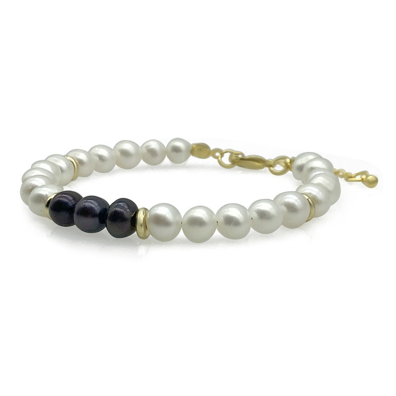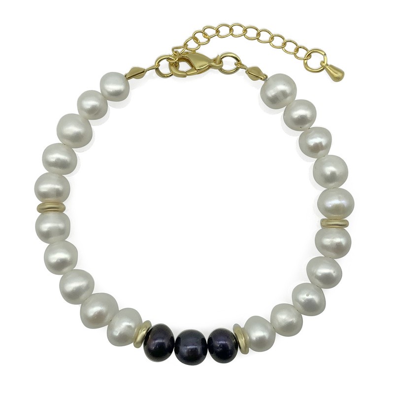 Luxury 7-8mm White & Black Freshwater Pearl with Real 18k Gold Plated Bracelet.