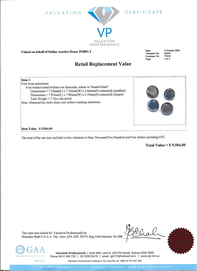 The Estimated Replacement Value does not represent a retail price or resale value of the item. It is an estimated value of the cost of replacing the item and is the opinion of the registered jewellery valuer based on the criteria detailed above. Variations may occur due to market fluctuations.