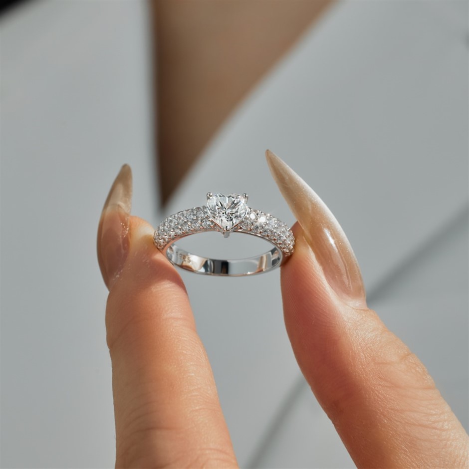 0.8ct Heart Cut GRA Certified Moissanite 925 Sterling Silver Ring - Size 5