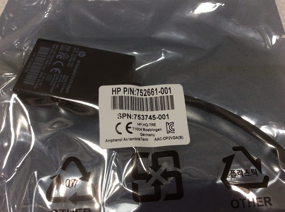 HP 752661-001 DisplayPort To VGA Adapter - New (Lot of 100)