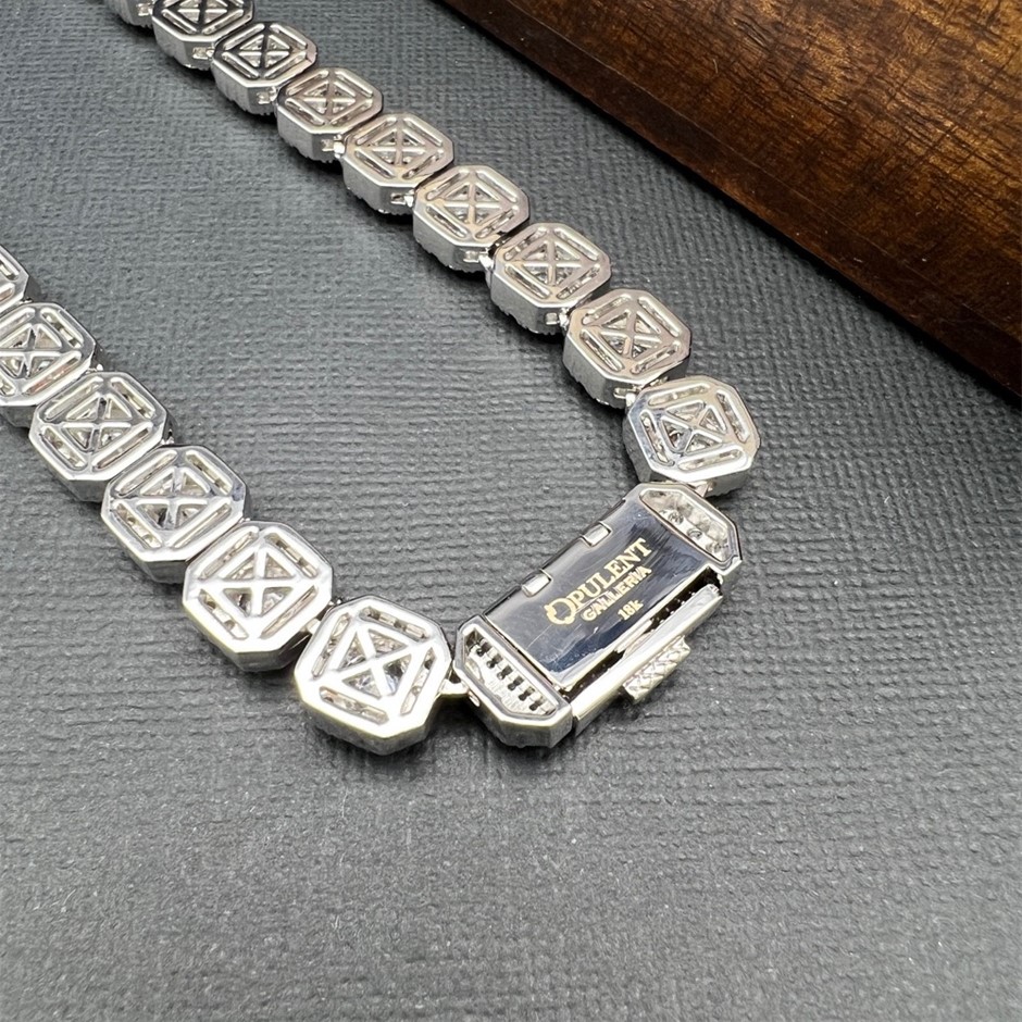 Opulent Galleria - 18K White Gold -Filled Clustered Chain Necklace Simulated Diamonds - 60.9cm