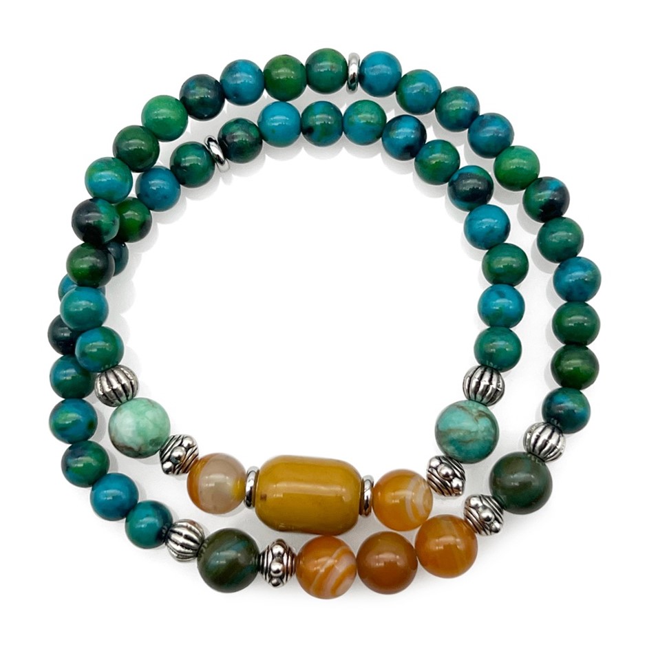 Men's 2 Row Mookaite, Apatite, Jasper & Stripey Agate Bracelet