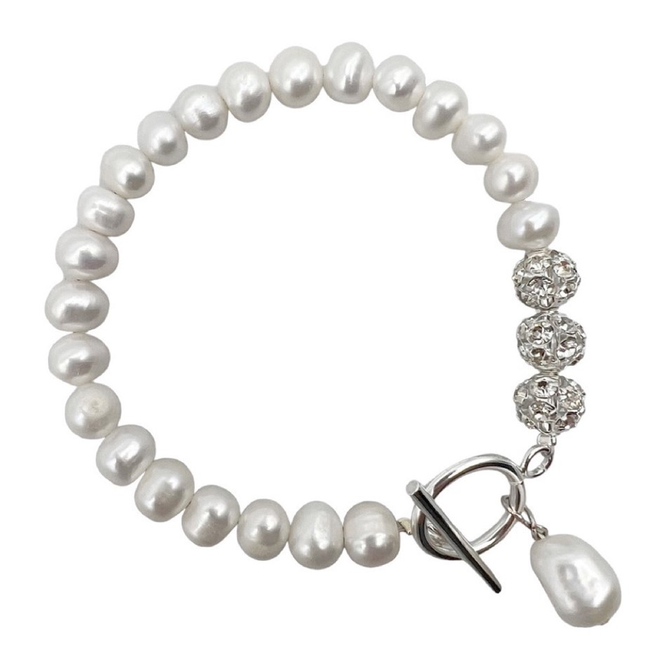 7-8mm Natural Potato & Baroque Freshwater Pearl with `O` Toggle & Rhinestones Necklace, Bracelet & Earrings Set