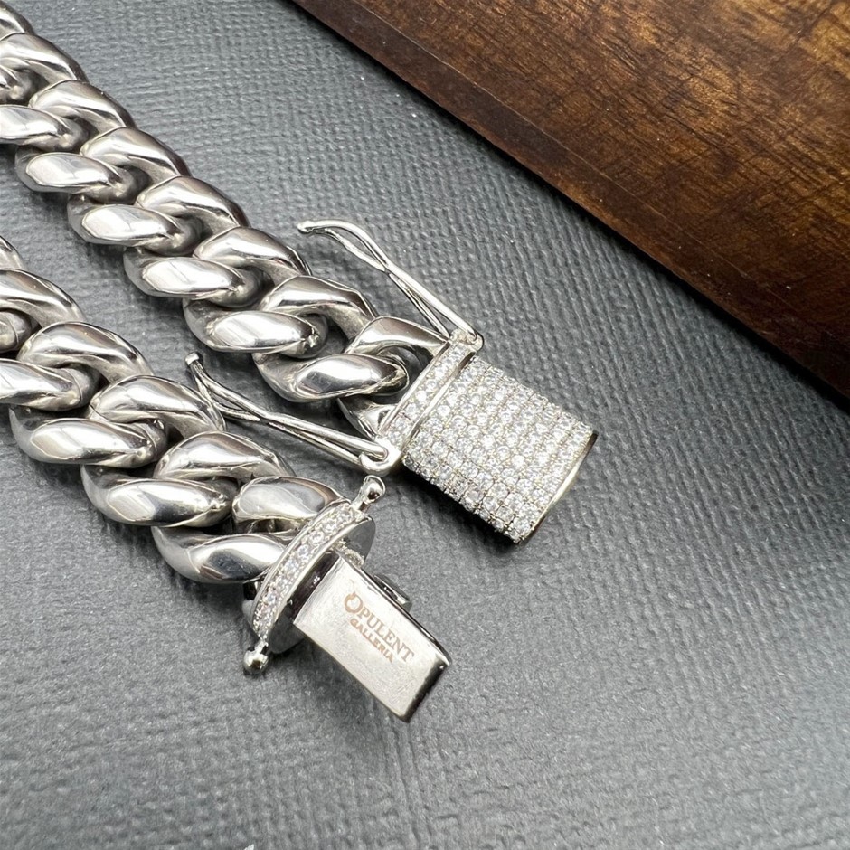 Opulent Galleria - Silver-Filled Cuban Chain Necklace Simulated Diamond Clasp - 60.9cm