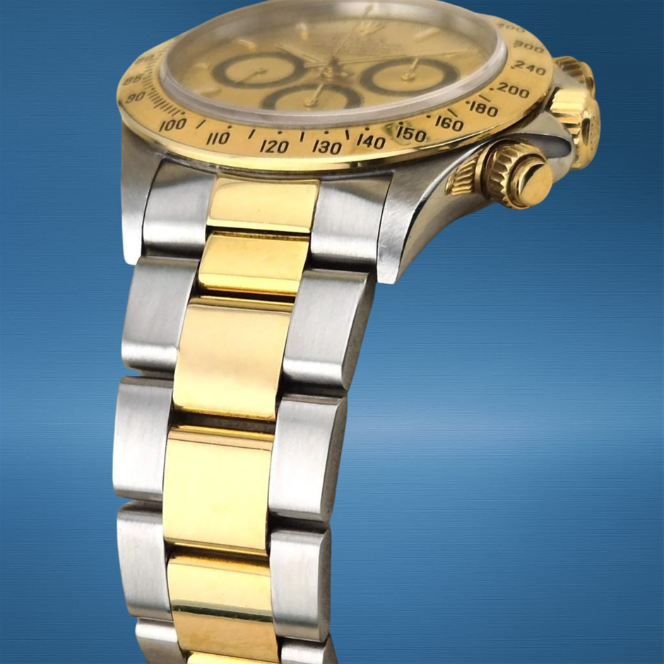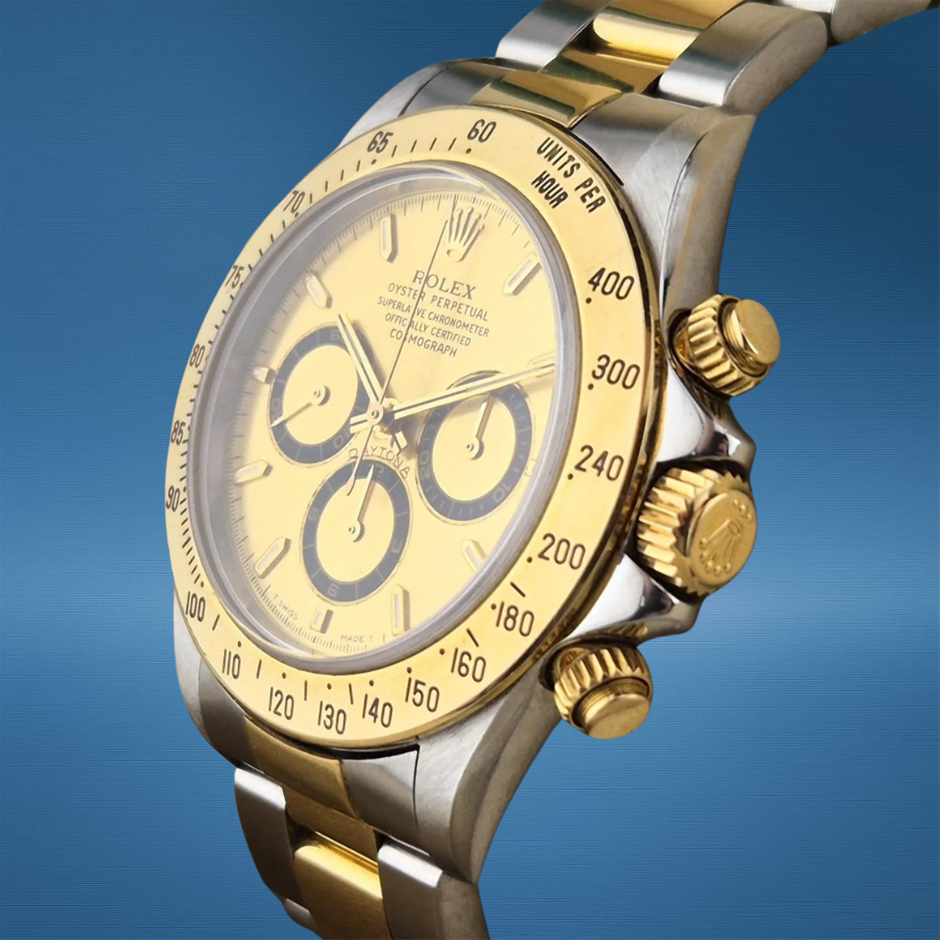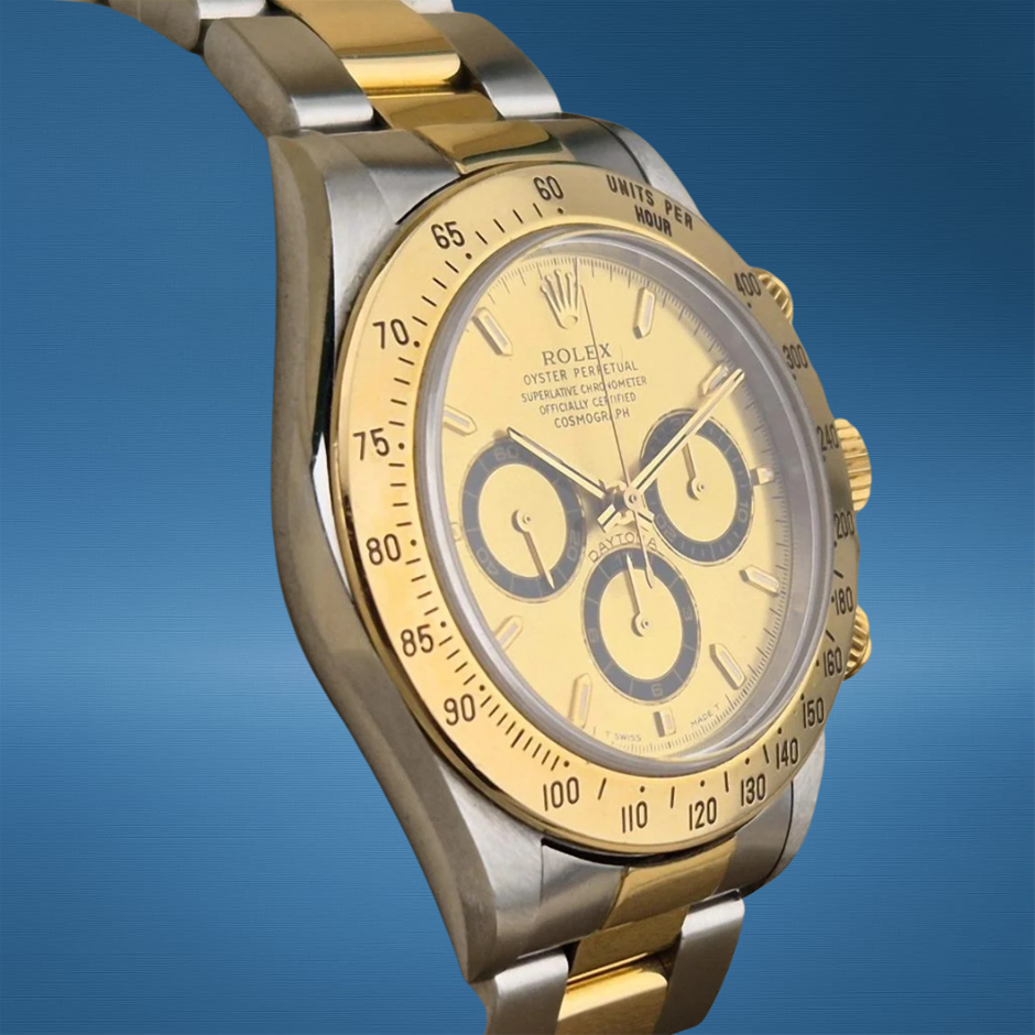 The Rolex Daytona 16523 blends classic two-tone sport luxury with the legendary chronograph pedigree Rolex is known for, pairing a bold 40 mm profile with functional timing capability and refined aesthetic appeal. Its versatile design and dependable movement make it a standout piece for collectors and everyday wear alike.