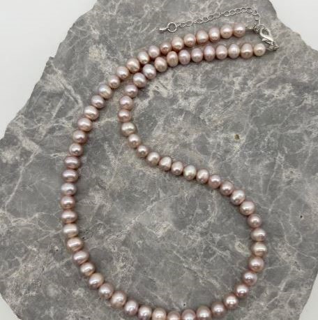 Natural 7-8mm Lavender Potato Shape Freshwater Pearl with Real Platinum Plated Necklace.