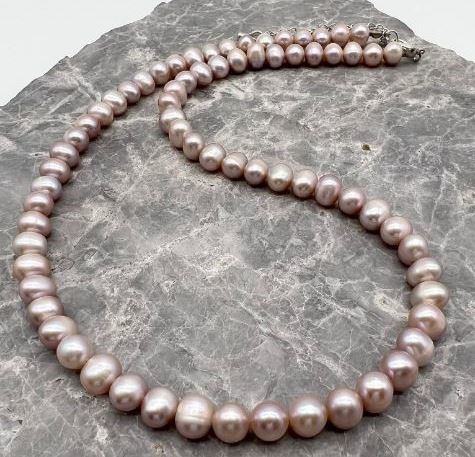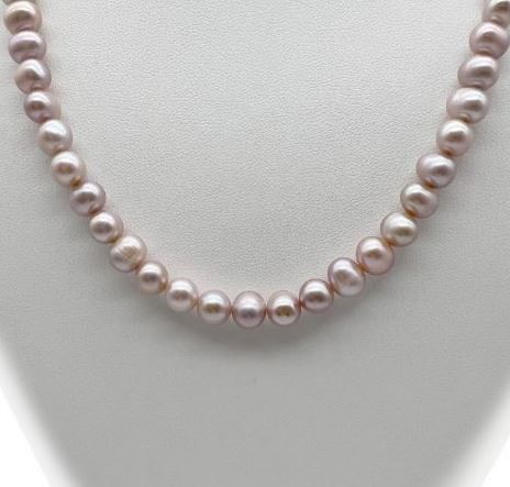 7-8mm Lavender Potato Shape Pearl with Real Platinum Plated Necklace