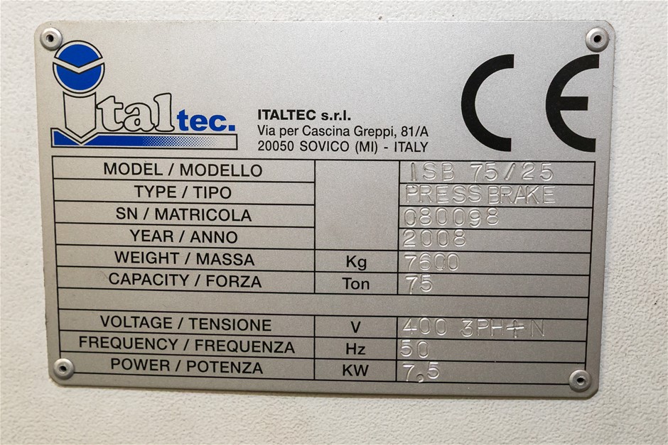 2008 ITALTEC ISB 75/25 CNC Hydraulic Press Brake