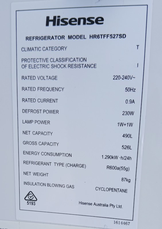 Hisense Model: HRTFF527SD Fridge/Freezer