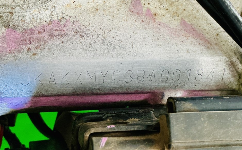 • VIN #1: JKAKXMYC3BA001841 (bike may not be road worthy for licensing purposes and the lack of a visible VIN may prevent registration).