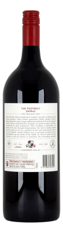 d'Arenberg The Footbolt Shiraz 2021 (1x 1.5L), SA.