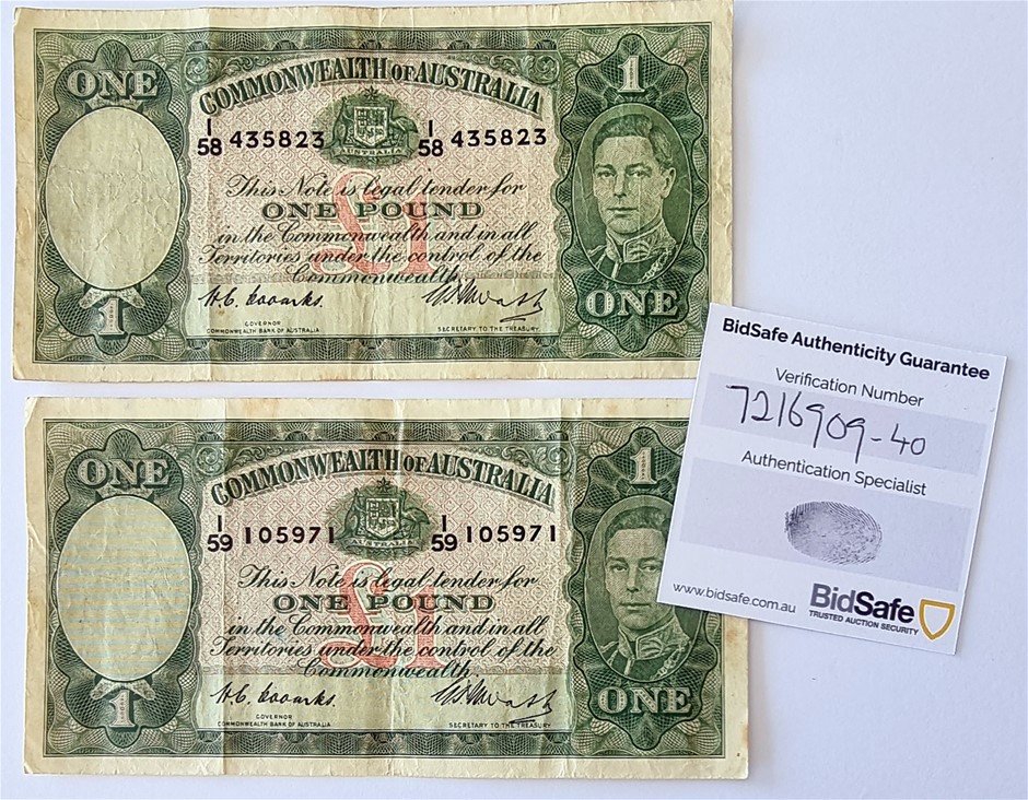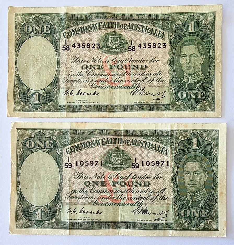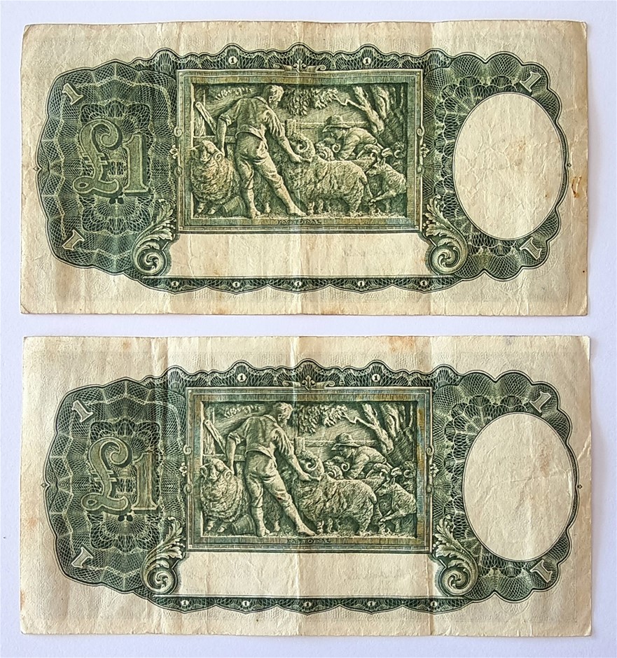 A PAIR OF 1949 AUSTRALIAN ONE POUND BANKNOTES