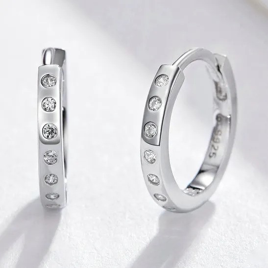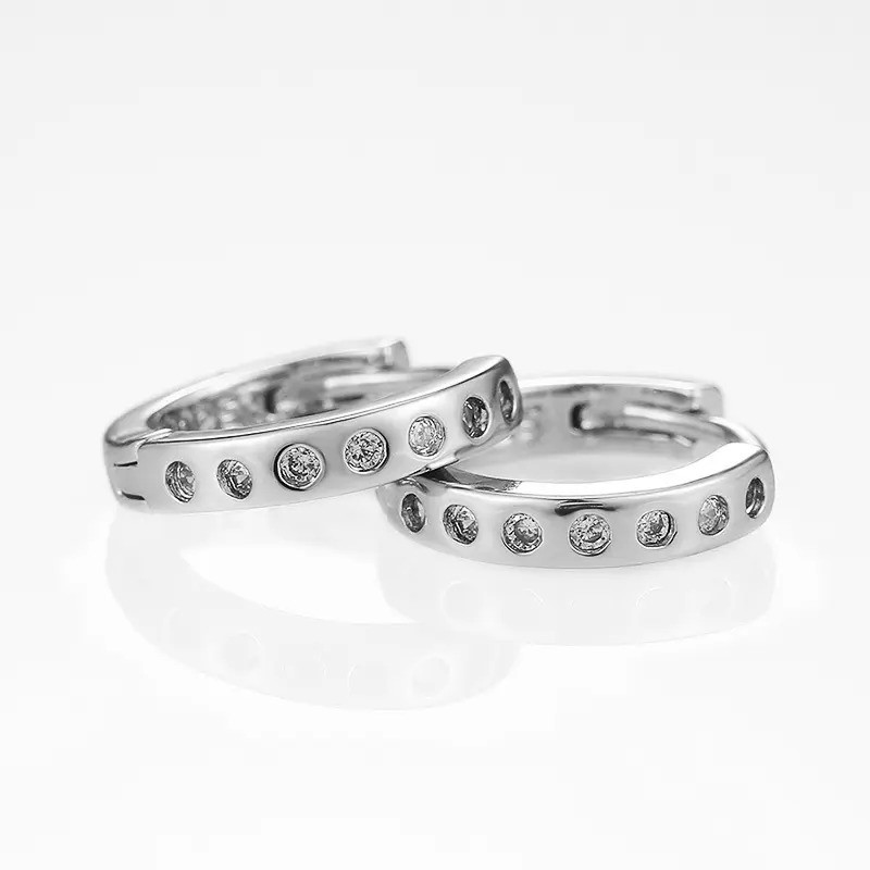 This Earrings is made from Elegant 18K White Gold plated White CZ Huggies Earrings