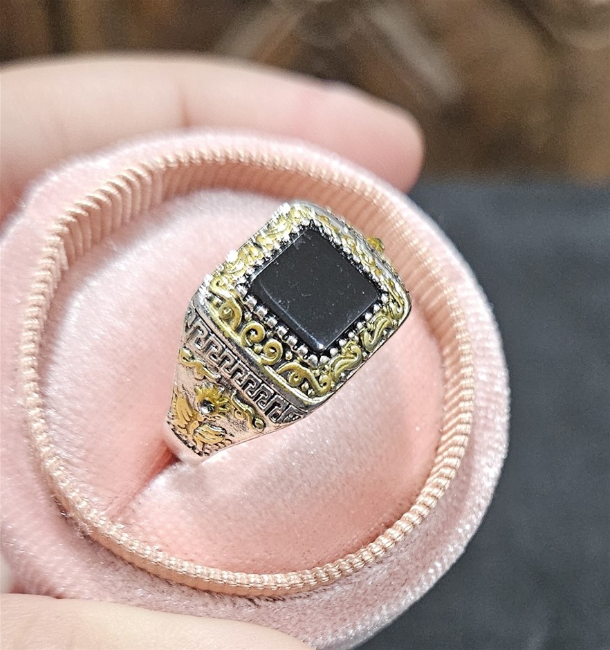 Men’s Mid-Century Antique Ring with Square Natural Onyx Stone