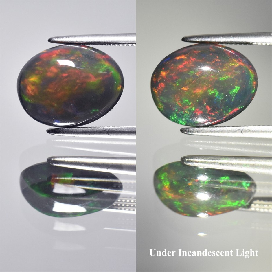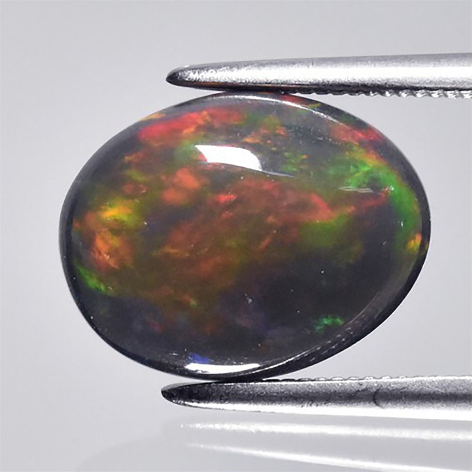 2.30ct Oval Cabochon Cut Play-of-Color Black Opal Gemstone - 1Pc
