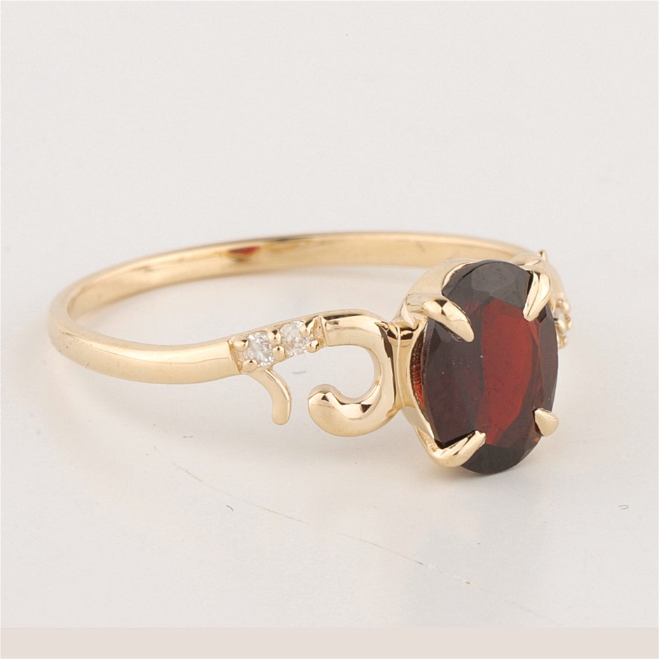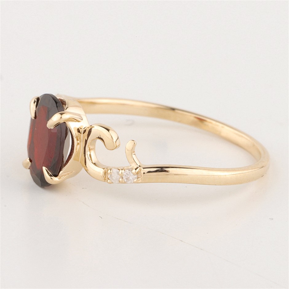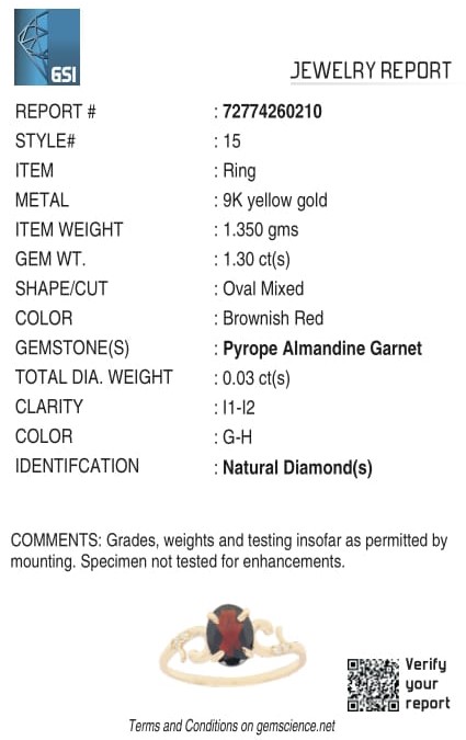 Yellow Gold Natural Pyrope Almandine Garnet & Diamond Ring with Lab certifcate