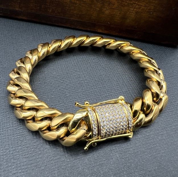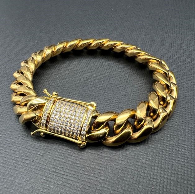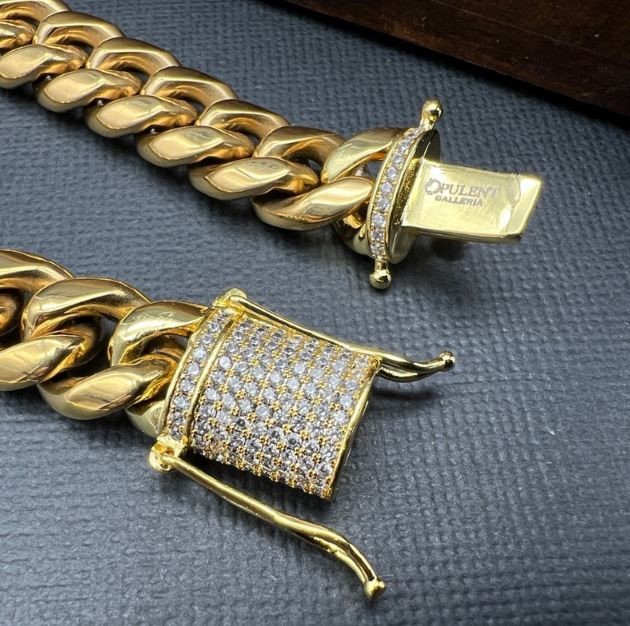 Opulent Galleria - 18K Gold-Filled Cuban Chain Bracelet with Simulated Diamond Clasp, 12MM Wide – 19cm