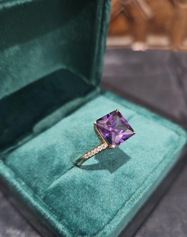 • Stones: 2.0ct Princess Cut Simulated VVS1 brilliant-cut Purple and White diamonds