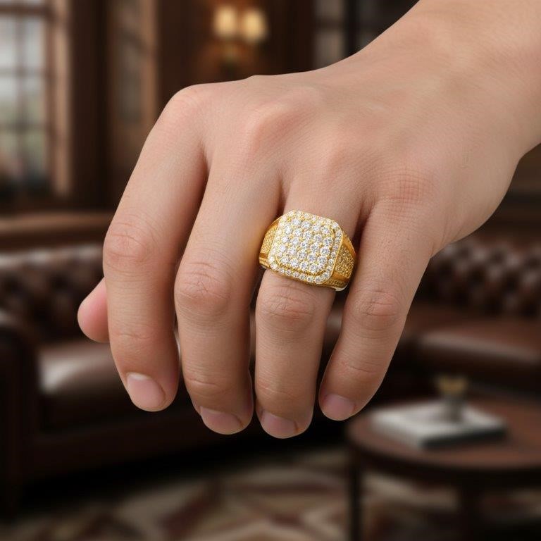 GRA Moissanite White 18k Real Gold Vermeil Men`s Ring -10US-VVS1