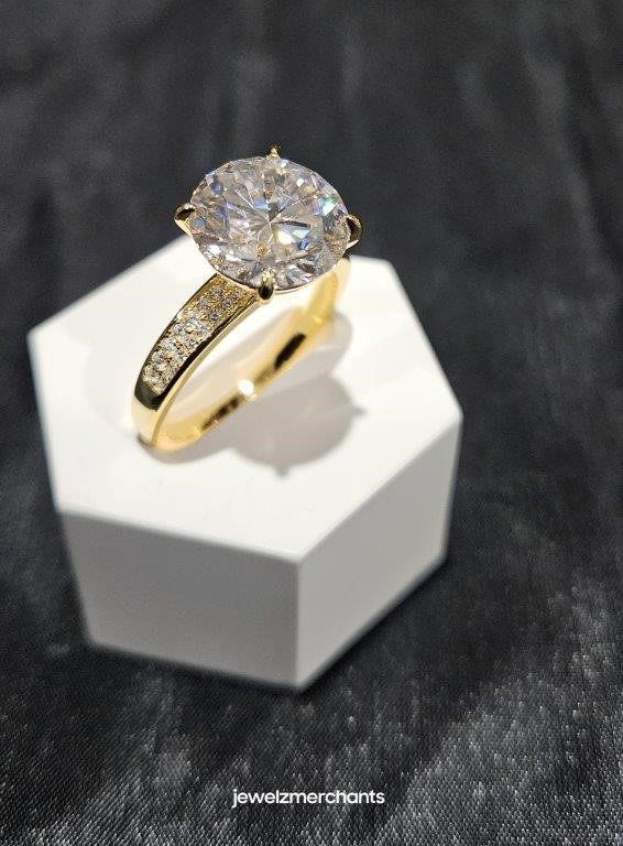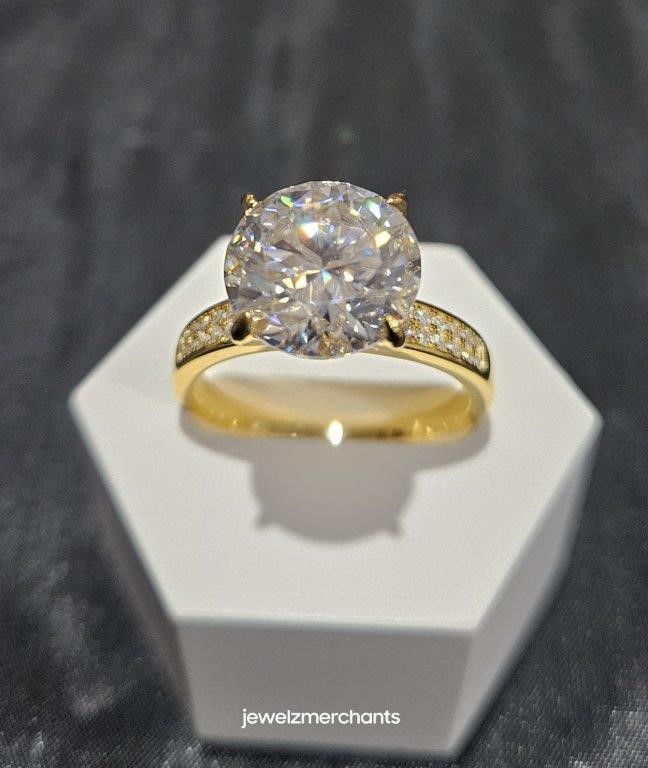 5.0ct GRA Moissanite White 18k Solid Yellow Gold Vermeil Ring -8US