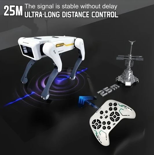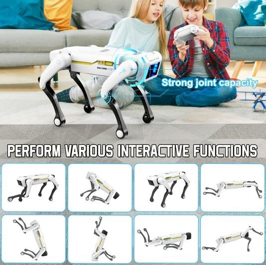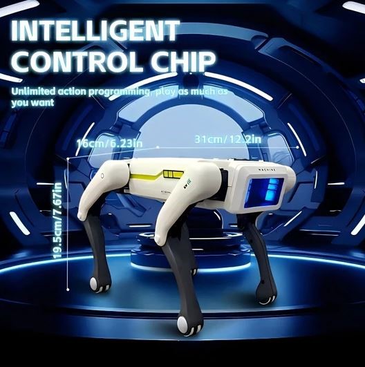 Description:The Smart Robot Dog is an interactive toy designed to respond to voice commands, remote control, and phone app connection. It features programmable actions, dancing, and responsive movement, making it a highly engaging and educational toy for children aged 6 and up. With its rechargeable lithium battery and multi-functional control modes, it delivers hours of tech-inspired fun.