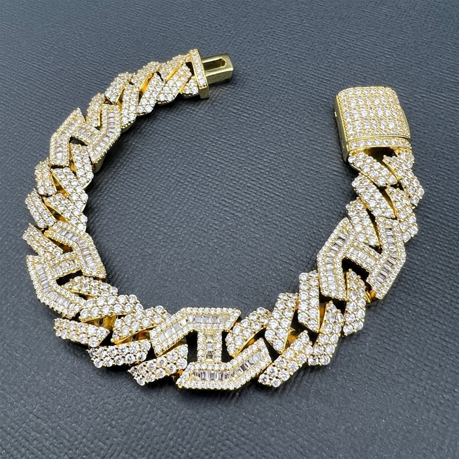 18K Gold-Filled Cuban Chain Bracelet with Simulated Diamonds - 20.3cm