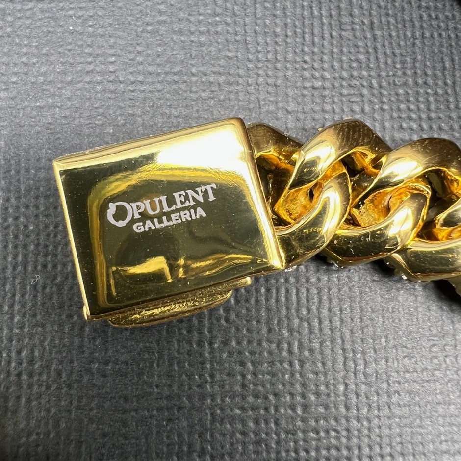 Opulent Galleria - 18K Gold-Filled Cuban Chain Bracelet with Simulated Diamonds, 16MM Wide – 20.3cm
