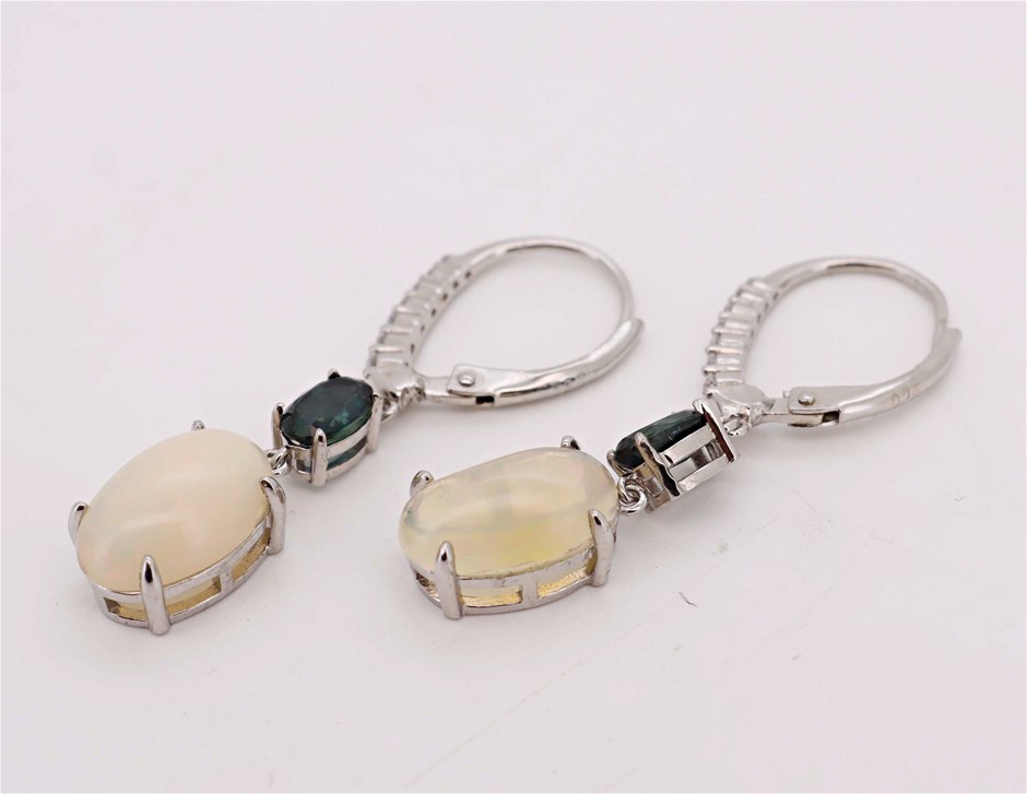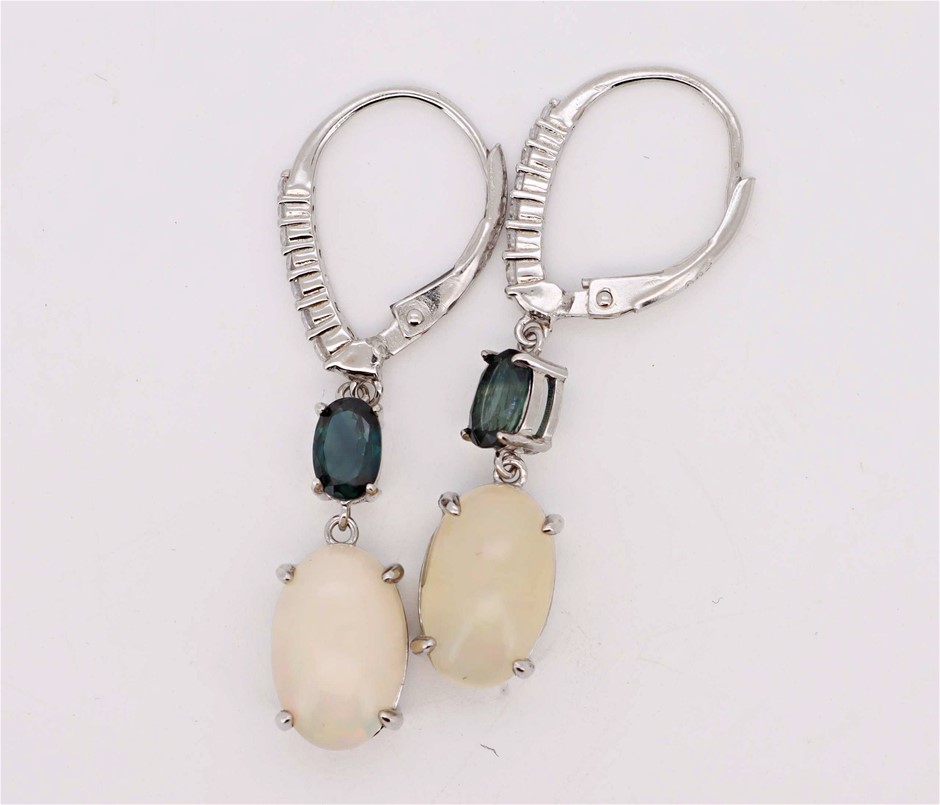 4.06 Carats Natural Opal & Blue Sapphire Earrings - 925 Silver