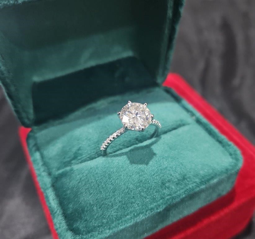 3.0ct GRA Moissanite white Brilliant Cut stone Ring-S925-9 US